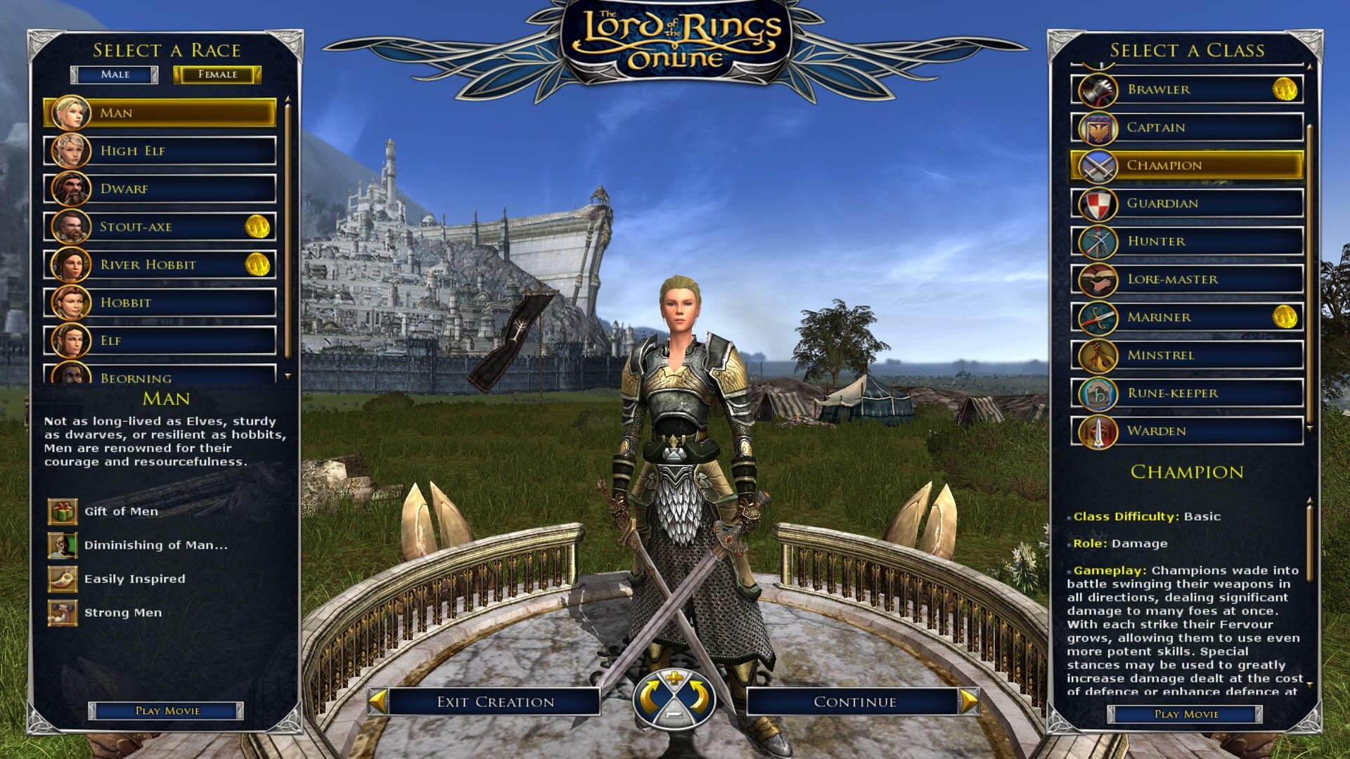 You’ll now see a list of available Races and Classes. For this guide we’ve chosen a Female Champion, but feel free to select whatever suits your playstyle.