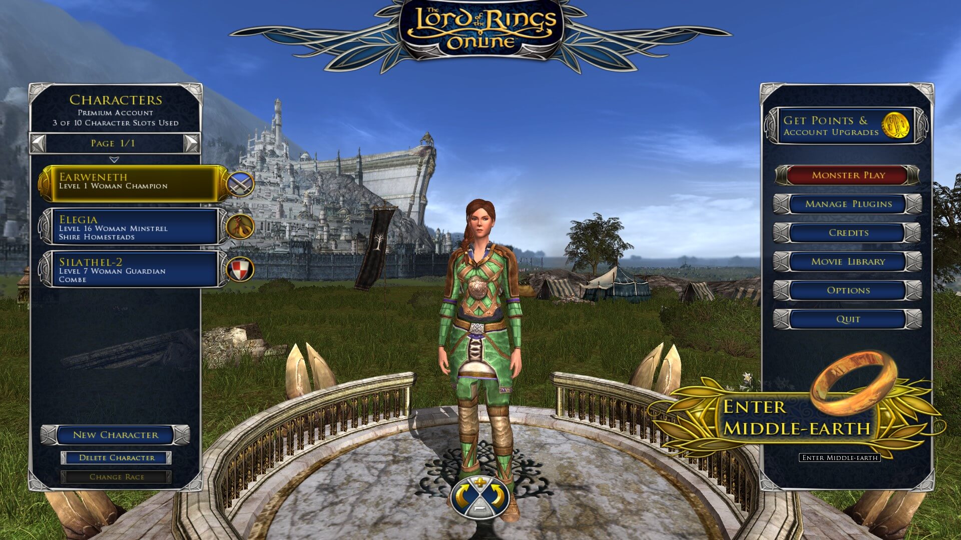 Your new character will now appear in your list. Make sure they’re highlighted, the click “Enter Middle-Earth” on the right-hand side of the screen.